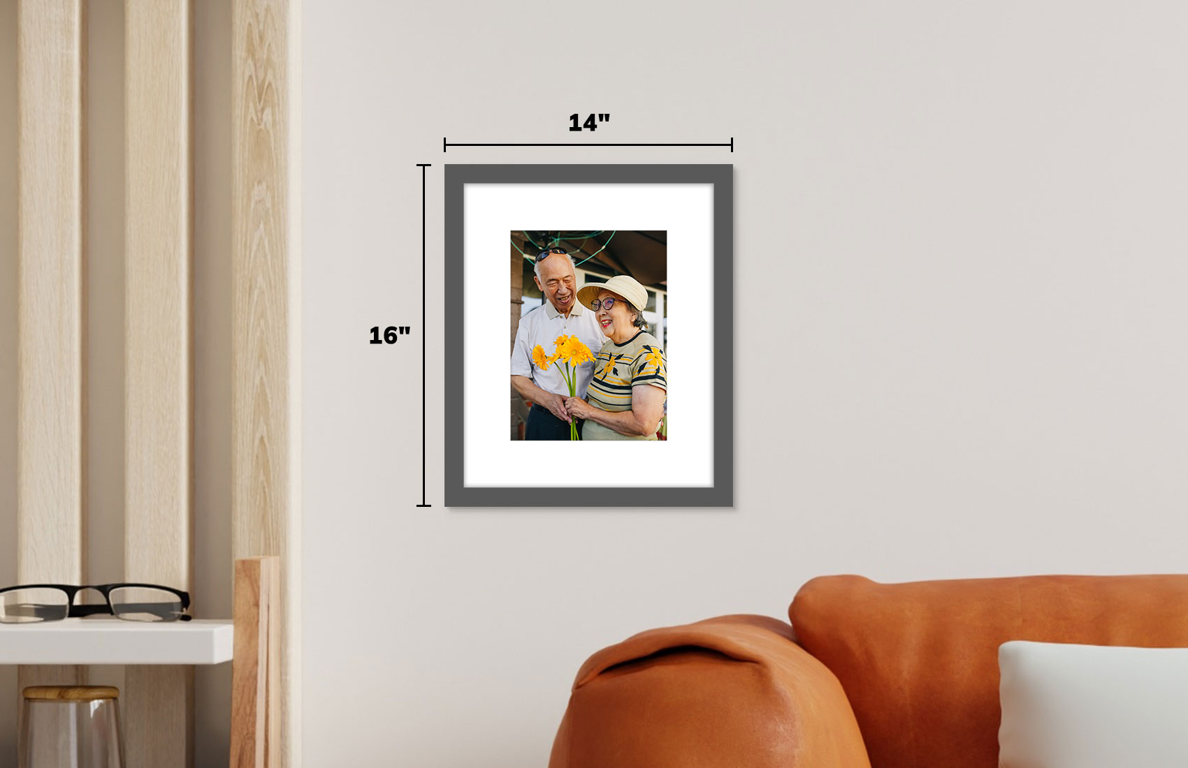 Classic gray frame with white matte, brings a touch of elegance and class to your décor. Wood frame includes your 8x10 print!