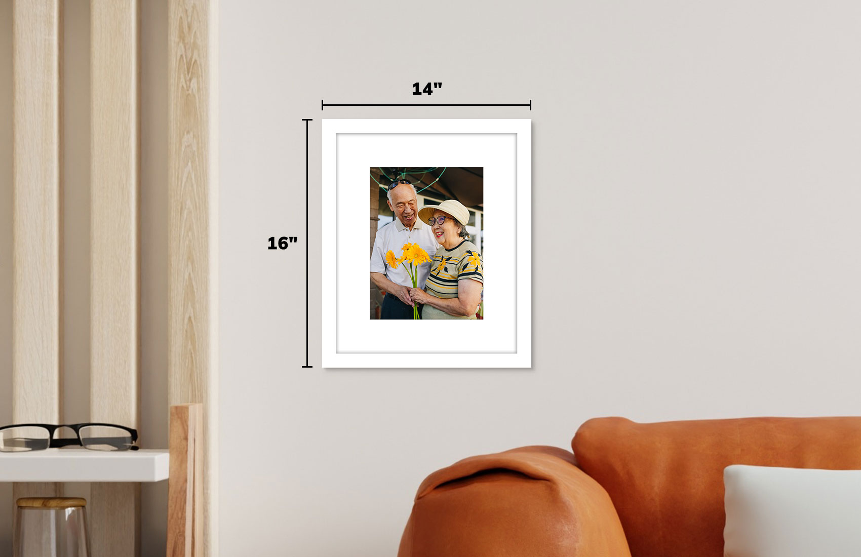 Classic white frame with white matte, brings a touch of elegance and class to your décor. Wood frame includes your 8x10 print!