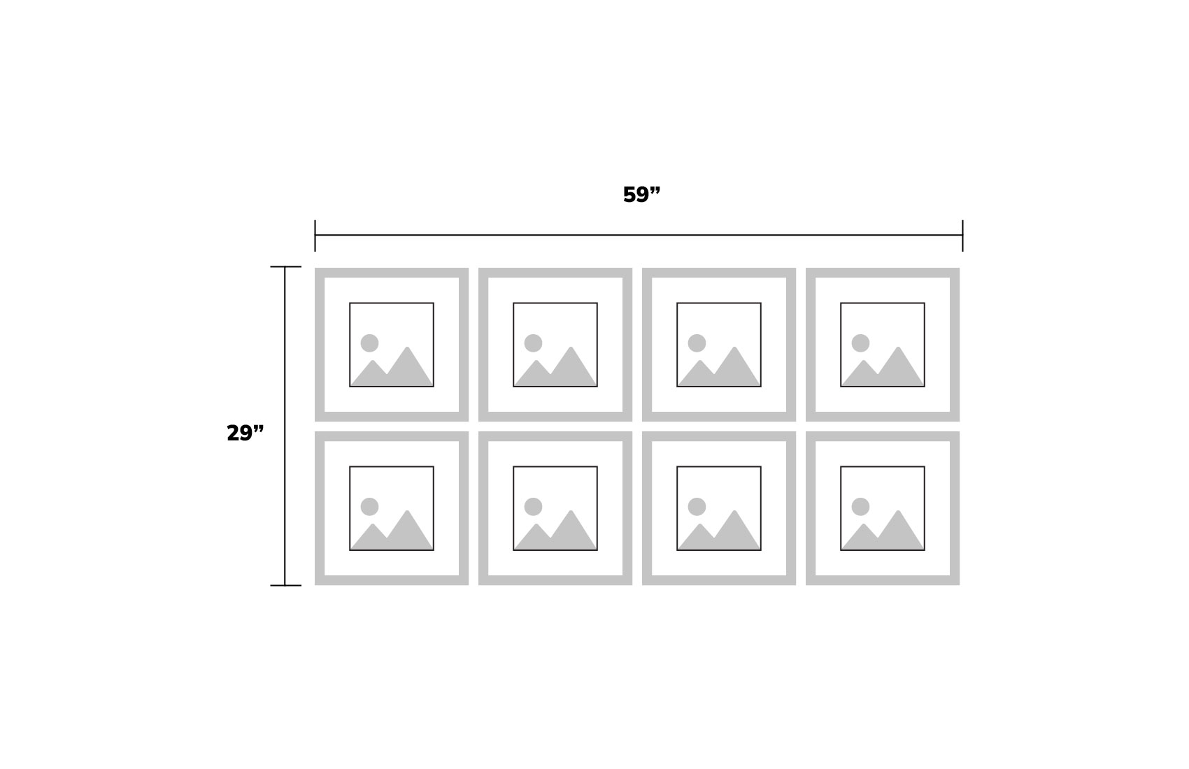 The perfect solution for that empty wall. Create a beautiful feature for your home with Gallery Wall Frames. Available in a variety of sizes ranging from 8x8 to 20x30 and available in different sets and combinations. Frames are available in Black, White & Gray to match any décor or style. Whether you are hanging 1 frame or 9, each frame comes with a hanging template to make installation and spacing easy.